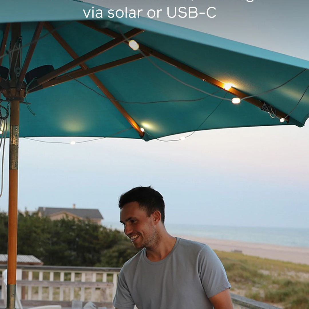 Optez pour les guirlandes lumineuses BIOLITE pour illuminer votre jardin ou votre campement.
